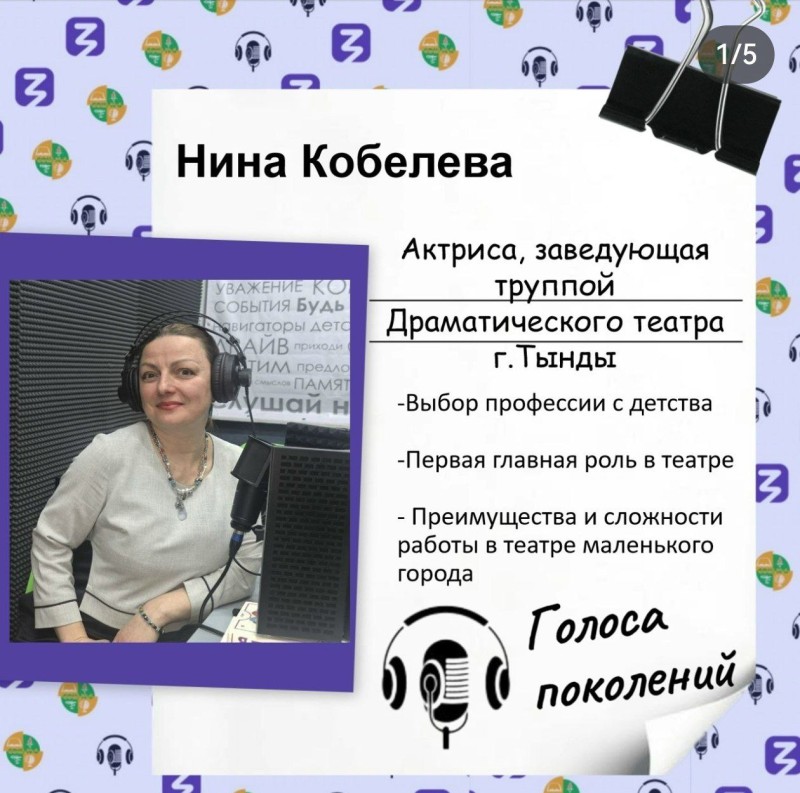 Знакомьтесь: Нина Владимировна Кобелева — та самая, которая заставляет вас смеяться и плакать, сидя в зрительном зале Драматического театра г.Тынды. И она побыла в гостях у «Голосов поколений»!