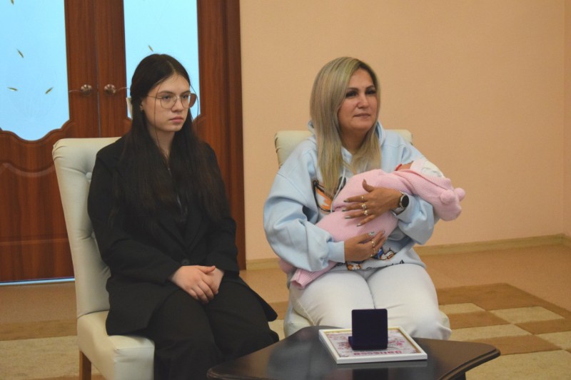 Оксана Гордиенко, временно исполняющая обязанности начальника отдела ЗАГС, поздравила родителей и вручила первый важный документ — свидетельство о рождении, памятный знак «Рождённый в Приамурье» и сборник памятных фронтовых писем и историй семей посвящённых 80-летию Великой Победы «История любви — история Победы». Также семью поздравили представители местного отделения фонда «Защитники Отечества», Управления молодёжи и спорта. Пожелав крепкого здоровья молодой маме и благополучия.