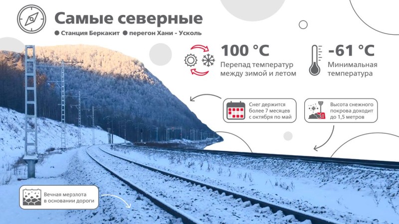 Самые северные и морозные участки, где работали компании Нацпроектстроя в рамках модернизации Восточного полигона – перегон Хани – Усколь и станция Беркакит.
