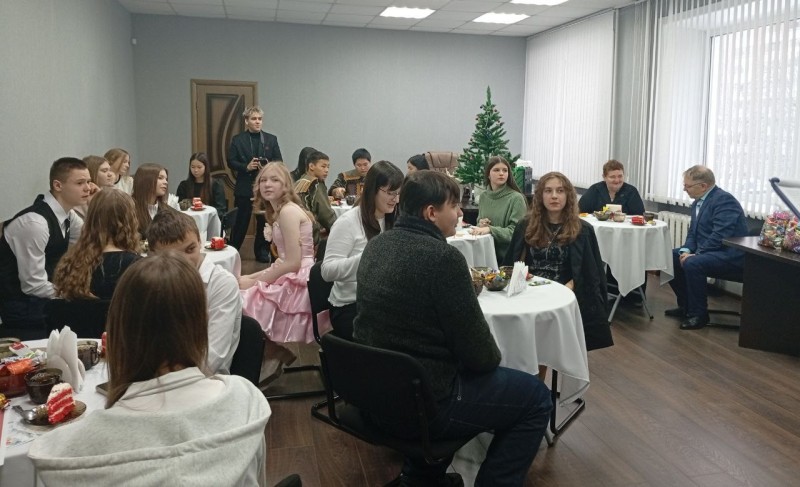Мероприятие прошло в двух форматах: «Чаепитие с главой» для старшеклассников и Новогодние хороводы вокруг ёлки с Дедом Морозом и Снегурочкой для младших классов.