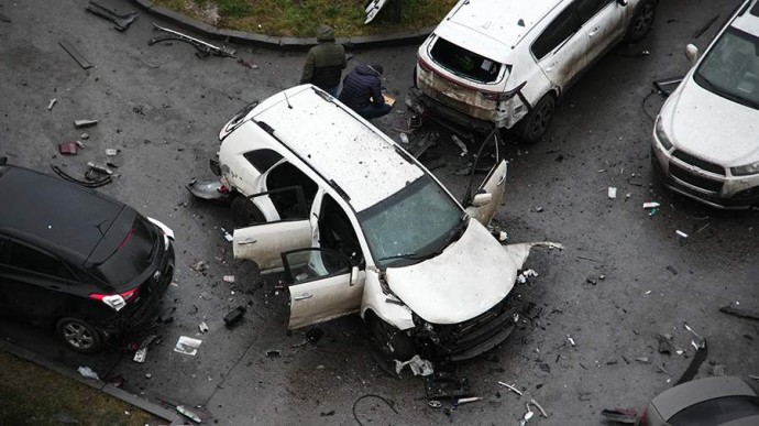Пресс-служба СК РФ также опубликовала кадры с места взрыва. На них видно, что автомобиль Сарварова получил сильные повреждения как снаружи, так и изнутри. Обломки транспортного средства разбросаны по земле взрывной волной.