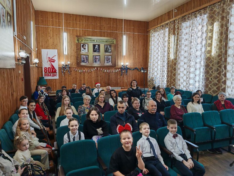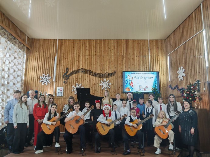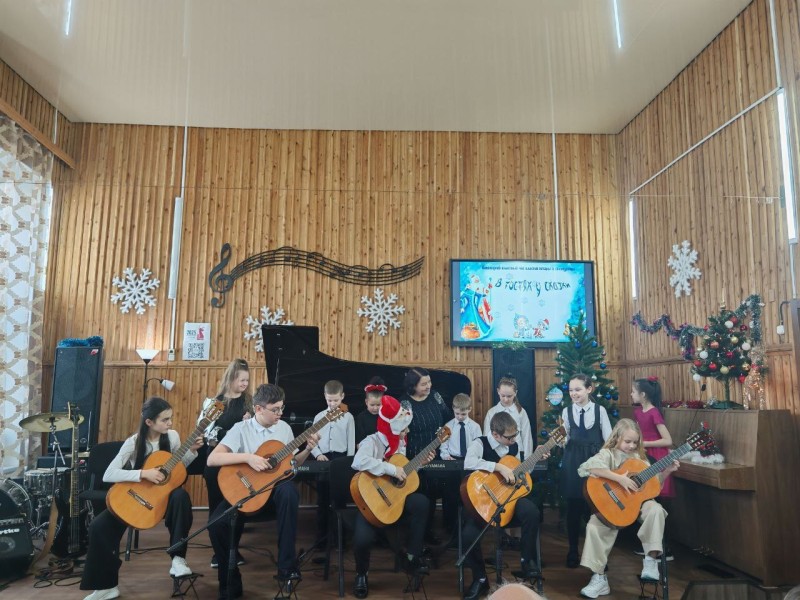 27 декабря в классах Елены Владимировны Щербина (синтезатор) и Сергея Михайловича Ермолаева (гитара) состоялся новогодний классный час «В гостях у сказки». В праздничной, предновогодней атмосфере ребята вместе с родителями вспоминали сказочных героев, отгадывали загадки, размышляли и фантазировали. И, конечно же — звучала Музыка. Ребята выступали как сольно, так и в ансамблях. В заключении прозвучала пьеса В.Шаинского «Кузнечик» в исполнении объединенного оркестра двух классов. Завершилось мероприятие традиционным чаепитием.