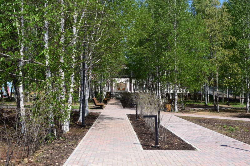 Оборудована новая светящаяся входная группа. По всей территории парка обустроены пешеходные дорожки, уложена тротуарная плитка, смонтировано освещение. Установлены скамейки и урны. Появилась новая парковка. Ранее на территории был установлен верёвочный городок для юных тындинцев и памп- трек для активной молодёжи. Дополнением стала ещё одна детская площадка с современным малыми архитектурными формами и амфитеатром. Полностью реконструирована территория площади эстрады, а украшением стала новая сцена и ещё один амфитеатр. Также подрядчик обустроил площадку для выгула собак и озеленил территорию.