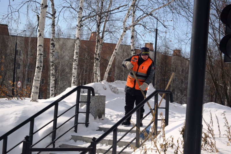 С начала рабочей недели дорожники в усиленном режиме очищают городские дороги и улицы от выпавшего снега. На линии работают 7 единиц техники и 10 дорожных рабочих, которые убирают снег с городских лестниц, чистят пандусы и пешеходные переходы, прилегающую территорию автобусных остановок.