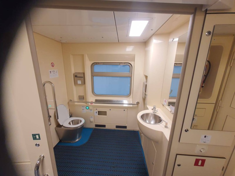В вагоне два санузла, один из которых для пассажиров, использующих кресло-коляску, второй — универсальный, доступен для всех пассажиров.