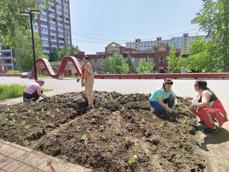 Также в рамках городского субботника прошла традиционная высадка цветов на общественных территориях города. Клумбы украсили петуньи, бархатцы и другие цветы, которые устойчивы к нашим климатическим условиям. В течение летнего периода работники будут ухаживать и поливать цветы.