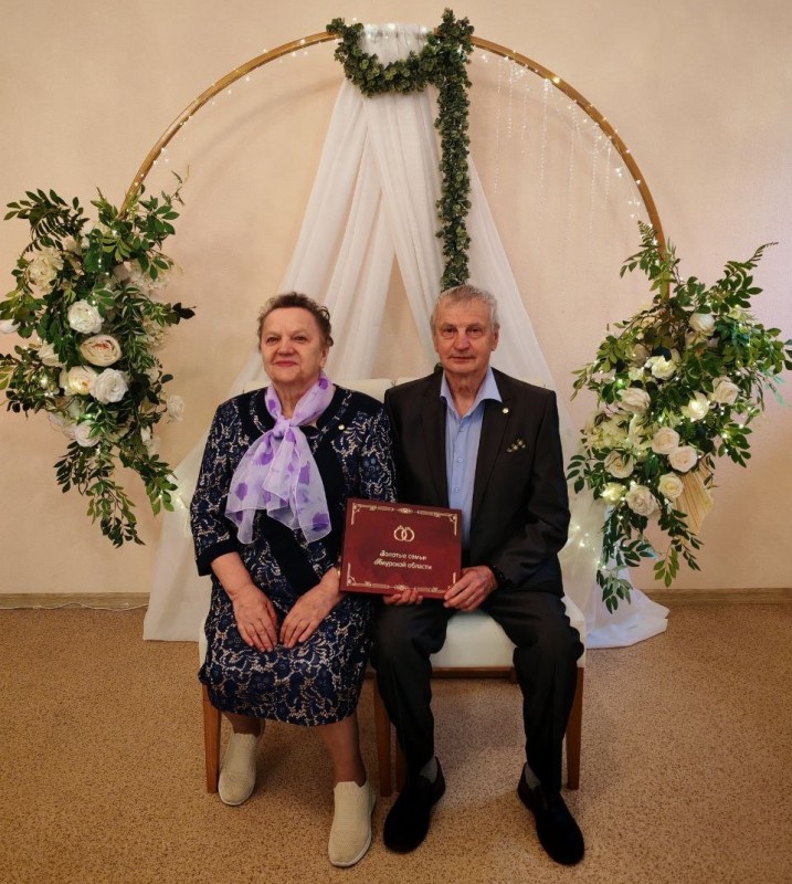 Сегодня во Дворце бракосочетаний Тынды поздравили замечательную семью Аркадия Анатольевича и Нину Николаевну Буториных. Супруги в браке 52 года и своим примером показывают молодому поколению, как важно ценить и беречь друг друга. История семьи Буториных вошла в книгу «Золотые семьи Амурской области», которую в этот день торжественно вручили семье.