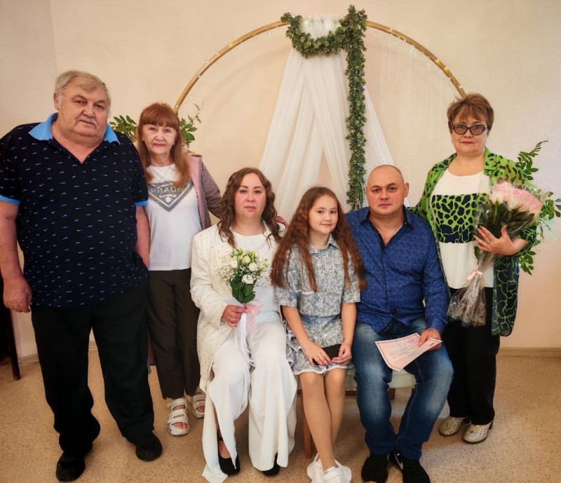 Также в этот день поздравили молодую семью Евгения и Екатерины Шмидт, которые решили продолжить семейную традицию и заключили брак 28 августа, как и их родители 43 года назад.