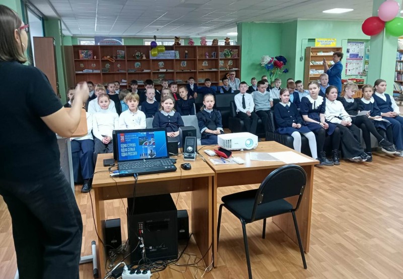 В рамках памятной даты — Дня воссоединения Донбасса и Новороссии с Россией в Тындинской городской библиотеке был проведен урок путешествие «В единстве с Россией» для третьеклассников 8го лицея и четвероклашек школы №2.