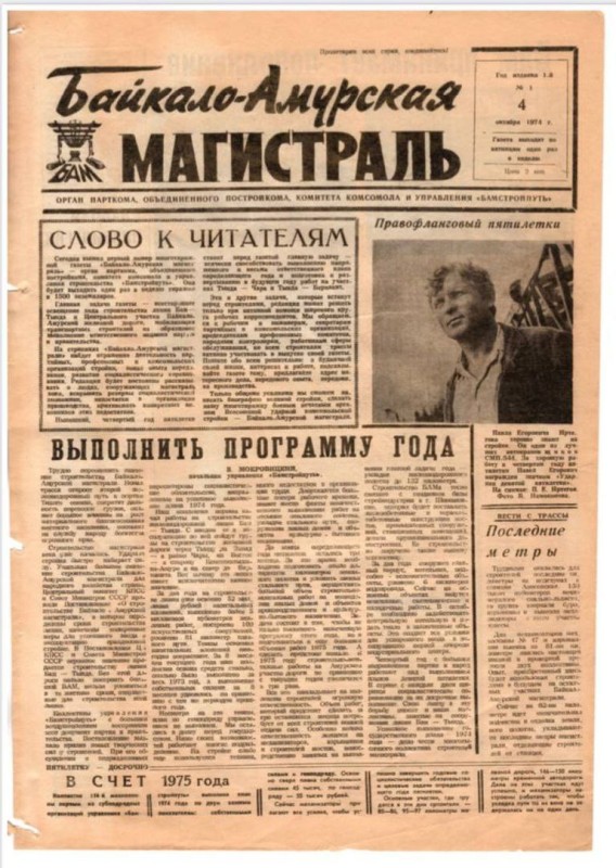 4 октября 1974 года в Тынде вышел в свет первый номер общетрассовой газеты «Байкало-Амурская магистраль». Главным редактором и вдохновителем издания стал Иван Михайлович Шестак.