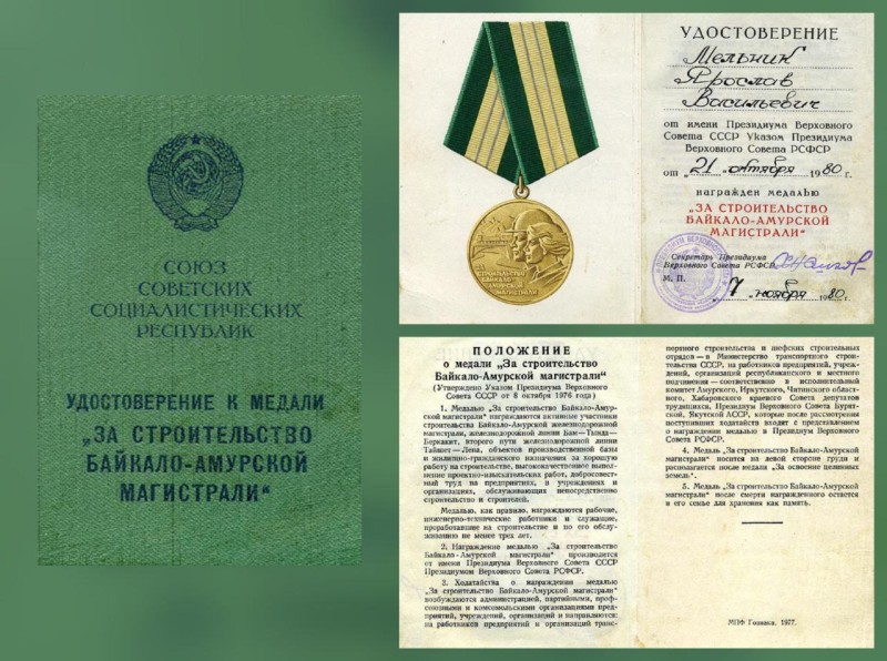 8.10.1976 Указом Президиума Верховного Совета СССР учреждена медаль «За строительство Байкало-Амурской магистрали»