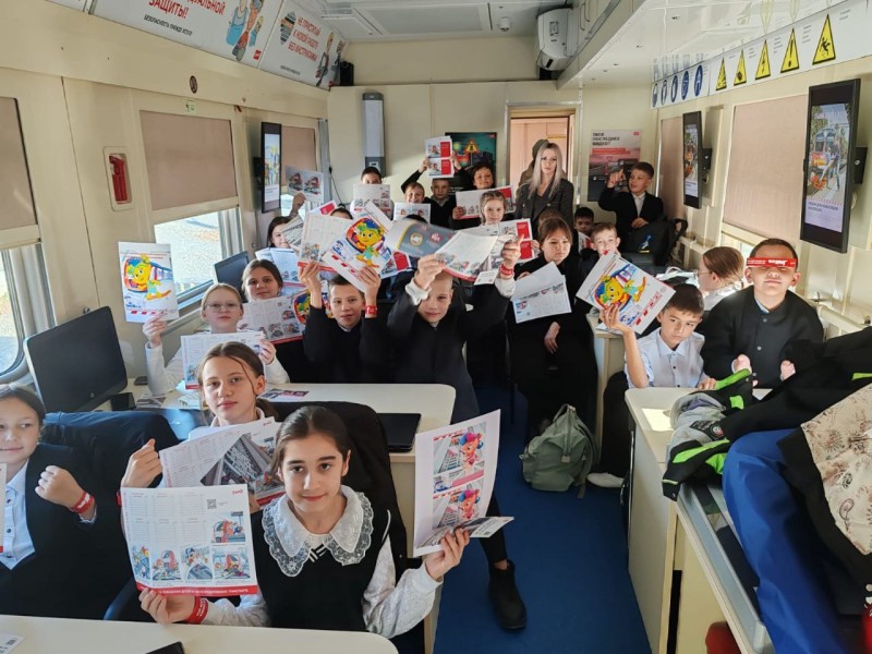 Пригласили ребят в специальный вагон охраны труда, в котором имеются: