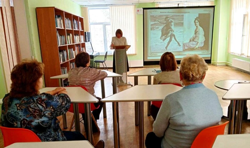 Члены клуба имели уникальную возможность подробнее познакомиться с творческим наследием Сергея Есенина. В центре внимания — тема заграничных путешествий Есенина: его поездки по Европе и Америке, которые, несмотря на внешнюю яркость и новые впечатления, не принесли поэту ни покоя, ни счастья. Напротив, именно вдали от родной земли он остро ощутил свою неразрывную связь с Россией. Каждое стихотворение, написанное за границей — будь то «Спит ковыль. Равнина дорогая …» или «Русь Советская» — пронизано глубокой тоской по родине, по её просторам, запаху скошенного сена, голосу родной речи. Завершилась встреча прослушиванием сохранившейся записи с живым голосом поэта. Вниманию присутствующих была представлена книжная выставка.