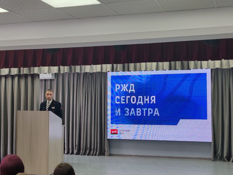 В ходе лекции сотрудники предприятия в лице Карагаева Виктора рассказали о компании Российские Железные Дороги в целом, ее миссии, ценностях, стратегии развития и значимости для Российской Федерации как в экономическом отношении так и в стратегического.