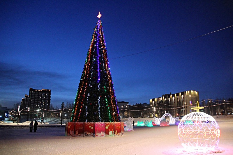 Столица БАМа, город Тында, встречает Новый год во всей красе! Главная площадь 25-летия БАМа, сердце города, преобразилась, окунувшись в атмосферу праздника и волшебства. Яркие новогодние огни засияли, освещая главную героиню торжества – величественную новогоднюю елку, а ледяные скульптуры, подсвеченные разноцветными гирляндами, создают поистине сказочное зрелище.