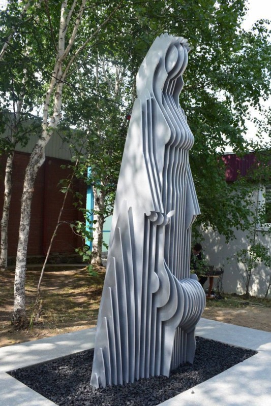 Но главные испытания ждали впереди. После трудного двадцатидневного пути из Москвы выяснилось, что из-за неправильной погрузки почти все тонкие пластины погнулись. А ведь весь художественный эффект «вуали» строится на точных зазорах между ними! Накануне открытия, в авральном режиме, местный сварщик помог нам их выправить. Собрали. И — о чудо! — скульптура обрела лёгкий, изящный наклон вправо. Мы лишь развели руками: на самом первом, набросанном от руки эскизе, она была наклонена точно так же.