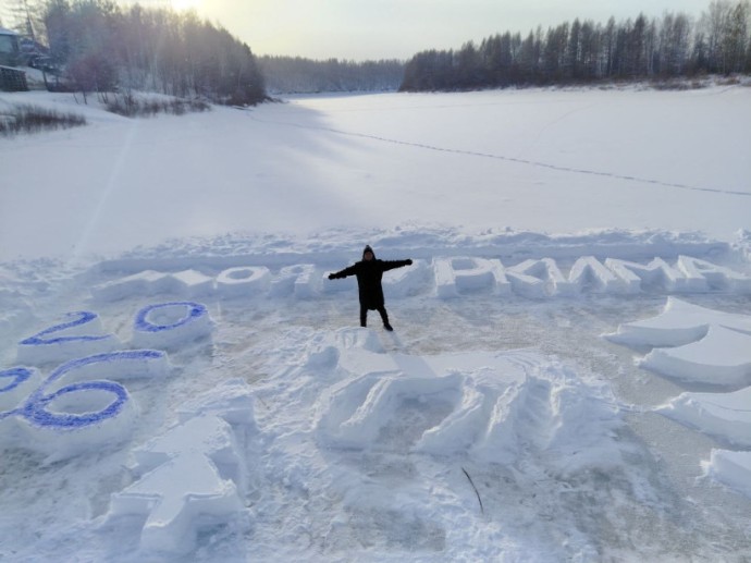 — Эскиз мы придумали с моей тетей Ларисой Владимировной, которая помогла нарисовать лошадь. Сначала хотели сделать оленя, но потом решили, что раз год Лошади впереди, то пусть будет она. Холодно на улице было неимоверно, лед на реке трескался под ногами, иногда даже было страшно, но я очень старался. В первый день пошел с лопатой и метлой — и сначала расчистил большой проём. На второй, уже определившись с сюжетом, подправил и закончил картину, — делится своей историей 32-летний ледовый художник.