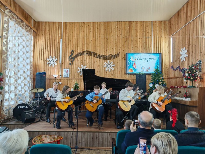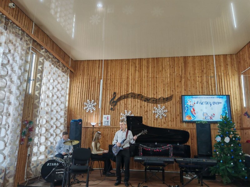 27 декабря в классах Елены Владимировны Щербина (синтезатор) и Сергея Михайловича Ермолаева (гитара) состоялся новогодний классный час «В гостях у сказки». В праздничной, предновогодней атмосфере ребята вместе с родителями вспоминали сказочных героев, отгадывали загадки, размышляли и фантазировали. И, конечно же — звучала Музыка. Ребята выступали как сольно, так и в ансамблях. В заключении прозвучала пьеса В.Шаинского «Кузнечик» в исполнении объединенного оркестра двух классов. Завершилось мероприятие традиционным чаепитием.