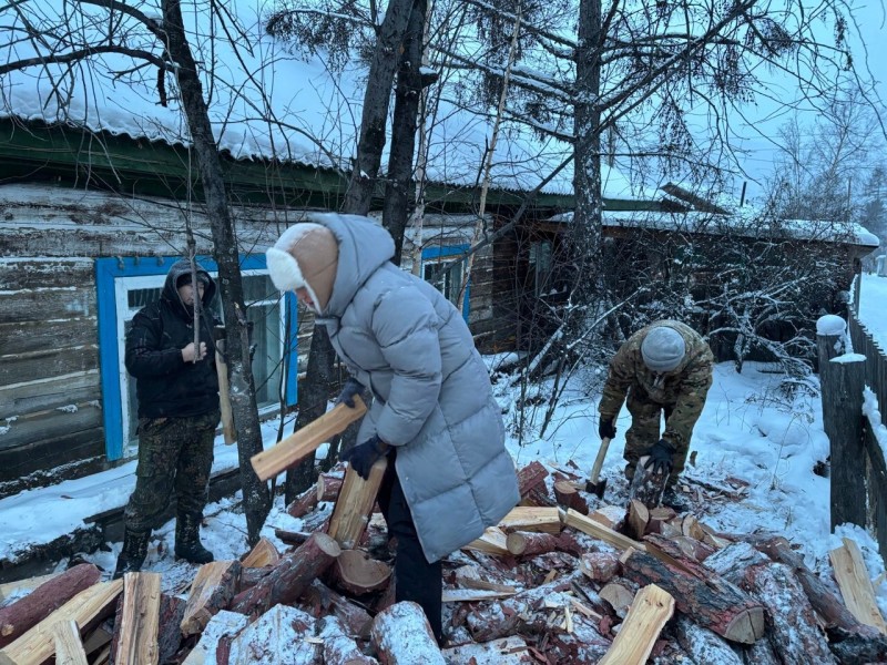 На этот раз они кололи и складывали дрова во дворе бывшей учительницы начальных классов, пенсионерки Валентины Лапшиной. Также Валентина Владимировна относится к категории детей войны.