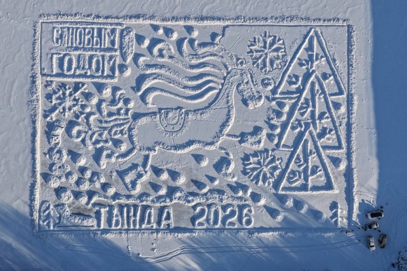 Тындинцы занимаются этим не первый год: новогодние открытки на льду уже стали для города доброй традицией. И каждый раз они получаются всё сложнее, всё смелее и всё масштабнее.