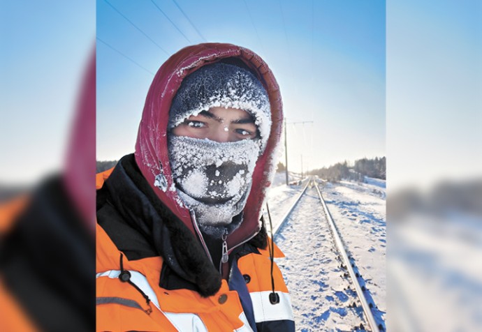 Во время основных работ в такой мороз рядом с бригадой всегда находится «вахтовка», где рабочие также могут согреться. Кроме того, монтёров пути особенно спасает разработанная по новым стандартам зимняя спецодежда, которая хорошо держит тепло. Её выдают раз в два года. Ну и термос с горячим чаем с собой – обязательно.