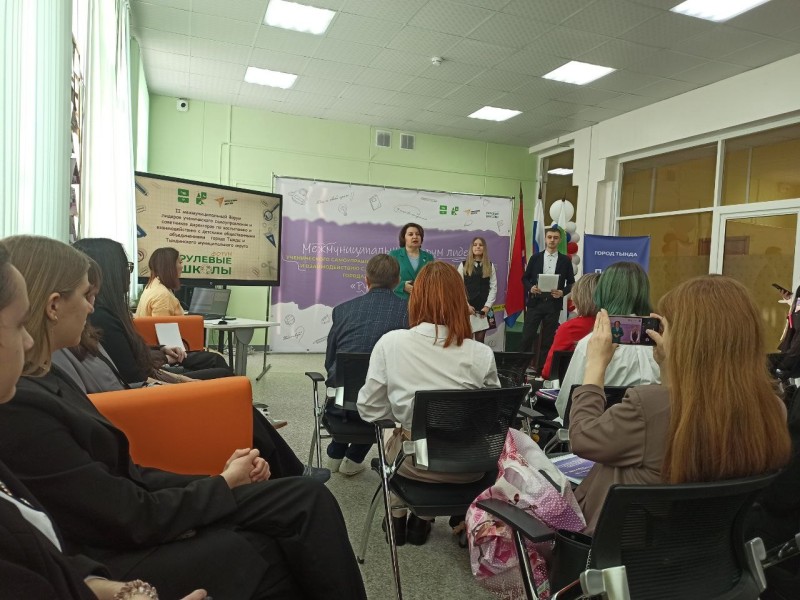 Советники директоров по воспитанию и Председатель межмуниципального Совета обучающихся (Вечтомова Ольга Османова Раксана Пестрякова Валентина, Иванюк Николай) презентовали свои практики в формате «Печа-куча» на площадке по обмену опытом.