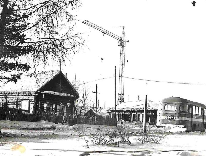 На фото: Улица Профсоюзная. Первый рейсовый автобус с номерным знаком 82-21 АМА. г. Тында. 1975 год. Из фондов музея истории БАМа