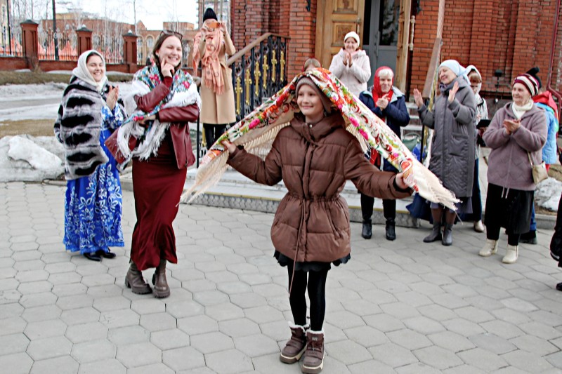 Праздник начался сразу после воскресной литургии, наполнив территорию храма атмосферой радости и единения. В этот особенный день горожане собрались вместе, чтобы вспомнить и прикоснуться к нашим богатым традициям. Как всегда, гостей ждали народные забавы, веселые игры, задорные хороводы и увлекательные спортивные состязания. А какой же праздник без угощений! Ароматный чай из самовара, домашние пироги, румяные блины и сладкие угощения – всё это создавало неповторимую атмосферу русского гостеприимства.