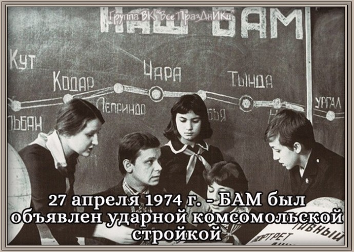 27 апреля 1974 г. - БАМ был объявлен ударной комсомольской стройкой