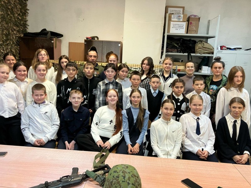 В рамках беседы была организована встреча с одним из бойцов СВО с позывным ЗиЛ — командиром одной из штурмовых групп, который добровольцем пошел на СВО. Ребята услышали рассказ про боевые действия, о том как важно уметь слышать, понимать и помогать друг другу, как письма, поделки учащихся поддерживают дух бойцов, какие невероятные истории с этим связаны.