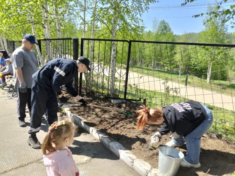 Стоит отметить, что жители Тындинского округа заботятся об озеленении территорий не только в период определенных дат, но и по велению сердца. Так в Чильчи ребята из пришкольного трудового лагеря благоустроили школьный двор: навели чистоту и высадили бархатцы.