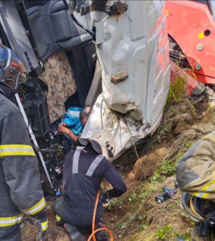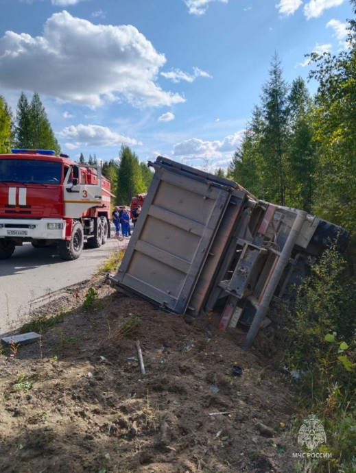 На 172 км федеральной автодороги «Лена» произошло ДТП с участием грузового автомобиля, в результате которого он съехал с трассы и опрокинулся. 4 специалиста на 1 единице техники отключили АКБ, произвели деблокирование зажатого в транспортном средстве водителя и передали его медикам