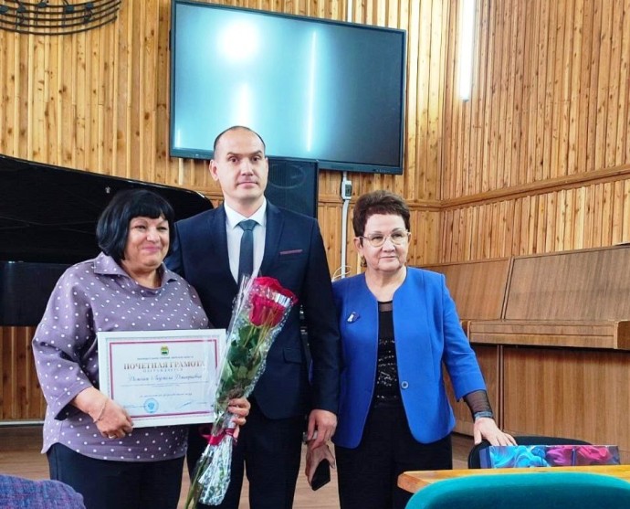 На встрече с коллективом школы Николай Чиркин вручил почетную грамоту Законодательного собрания Амурской области Людмиле Деменюк, преподавателю по классу баян. Такая высокая награда — заслуженное признание многолетнего добросовестного труда Людмилы Дмитриевны, её неустанного вклада в воспитание молодого поколения талантливых музыкантов, щедрости души и профессионализма.