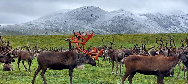 Делимся с вами необычными фото Усть-Нюкжинских оленей на фоне уже заснеженных сопок.