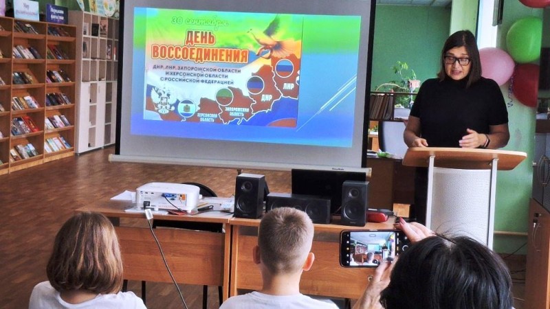 Ведущая рассказала присутствующим историю вхождения новых регионов в состав Российской Федерации. Разъяснила причины исторического присоединения, объяснила, что присоединенные земли – это русские земли, а города Херсон и Запорожье были основаны Екатериной II в 1778 году как центры кораблестроения России. Ребята ответили на вопрос, как они сегодня понимают смысл воссоединения, прочитали стихотворения о вновь принятых республиках. Далее с помощью слайд–шоу узнали о тех, кто сейчас стоит на защите нашей Родины. Учащиеся посмотрели видеоролик о счастливых моментах воссоединения, восстановления Донбасса, новых проектах и грандиозных планах.