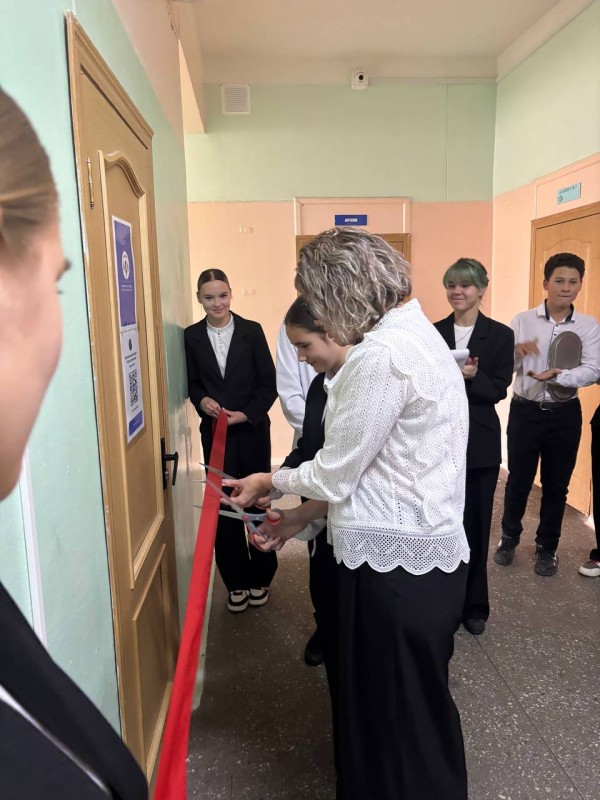 Кульминацией стало перерезание ленточки самой юной участницей медиакоманды Поллиной Струк и директором школы Олесей Юрьевной Злыгостевой.