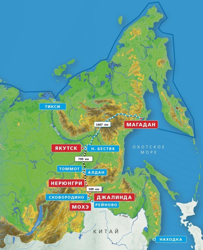 Как сообщал ранее генеральный директор «ЖДЯ» Василий Шимохин, строительство железной дороги Нижний Бестях – Магадан планируется в три этапа. На первом соединят Нижний Бестях с Хандыгой. Там же проложат автомобильно-железнодорожные мосты общей протяженностью более 2 километров. Второй этап доведет дорогу до города Сусумана в Магаданской области. А третий этап – от Сусумана до Магадана.