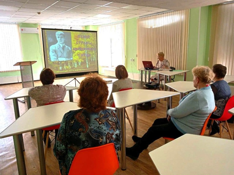 Члены клуба имели уникальную возможность подробнее познакомиться с творческим наследием Сергея Есенина. В центре внимания — тема заграничных путешествий Есенина: его поездки по Европе и Америке, которые, несмотря на внешнюю яркость и новые впечатления, не принесли поэту ни покоя, ни счастья. Напротив, именно вдали от родной земли он остро ощутил свою неразрывную связь с Россией. Каждое стихотворение, написанное за границей — будь то «Спит ковыль. Равнина дорогая …» или «Русь Советская» — пронизано глубокой тоской по родине, по её просторам, запаху скошенного сена, голосу родной речи. Завершилась встреча прослушиванием сохранившейся записи с живым голосом поэта. Вниманию присутствующих была представлена книжная выставка.