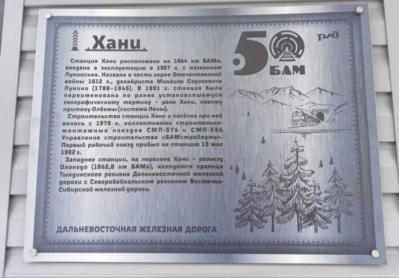 Благодаря настойчивости Евгения Александровича и содействию действующего начальника станции Хани Анисова Василия Сергеевича, была восстановлена историческая справедливость о станции Хани: входную зону вокзала станции Хани украшает информация к 50 — летию БАМа.