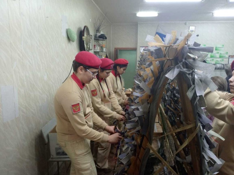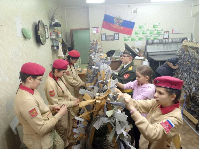 В городском пункте помощи бойцам СВО юнармейцы оказали помощь волонтёрам в плетении маскировочных сетей. Ребята с большим энтузиазмом и желанием принялись за работу, во время которой исполняли русские народные песни и песни времен Великой Отечественной войны.