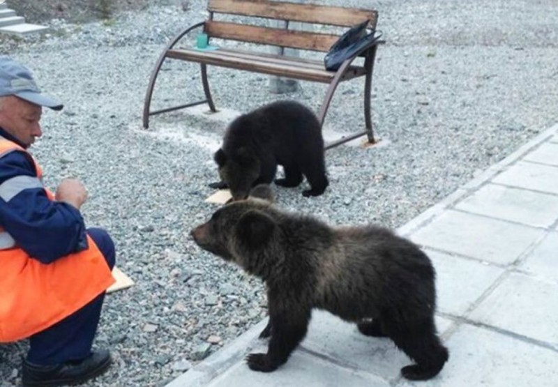 *Осенью 2017 г. к железнодорожникам на рзд. Улагир стали приходить медвежата, которым ещё не было и года. Их мама погибла, и они пришли искать помощи у людей.