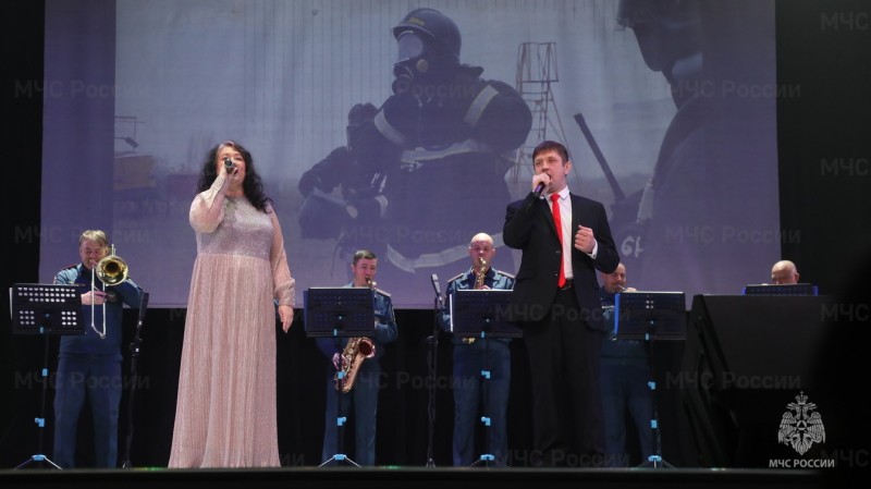 Для собравшихся в ДК «Русь» выступили солисты ансамбля «Звезда надежды» ГУ МЧС России по Амурской области. Прозвучали песни о героической работе пожарных и спасателей, которые создали особую проникновенную атмосферу, еще раз подчеркивающую сплоченность всех, кто поднимался на сцену.