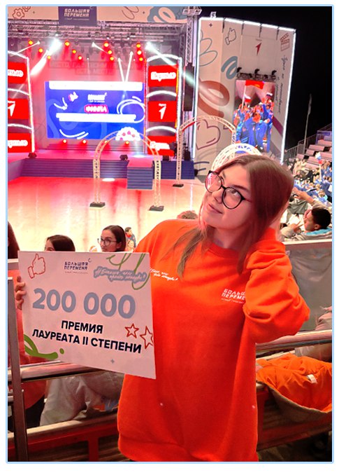 В 2025 году стала обладателем диплома второй степени и сертификата в 200 тысяч рублей конкурса «Большая перемена», финал которого состоялся в «Артеке», Мария Петрова из шестой школы. Управление образования, педагогическое сообщество города Тынды поздравляют Марию, администрацию и коллектив МОБУ СОШ №6 г. Тынды с этой наградой.