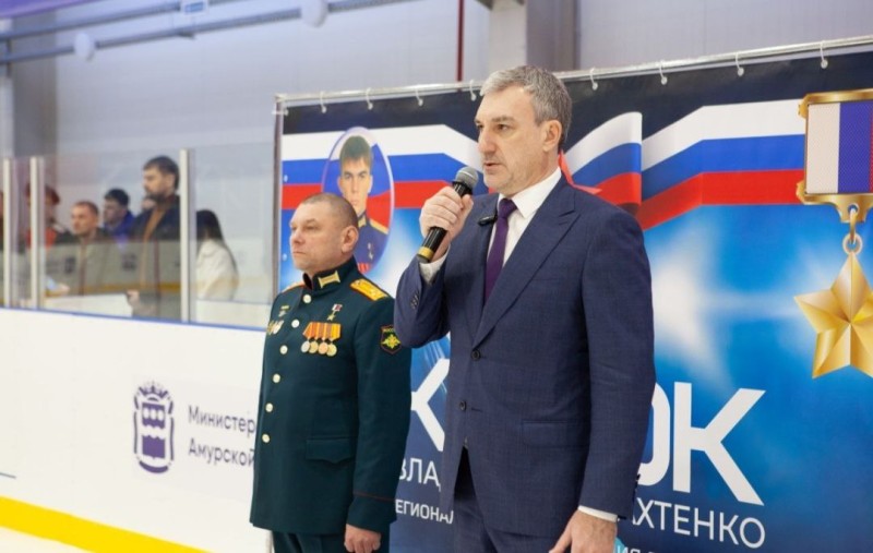 «Сегодня в третий раз проводятся соревнования, посвященные памяти дважды кавалера ордена Мужества, Героя Российской Федерации. Наш земляк, выпускник ДВОКУ Владимир Барахтенко отдал свою жизнь за нашу Родину. В прошлом году я обещал, что третий турнир пройдет на новой крытой арене «Гагарин лед», и сегодня мы здесь, приветствуем наших амурских хоккеистов. В планах следующего года открыть ещё два круглогодичных катка в Белогорске и Свободном. Всего будет девять катков. Десятый сейчас проектируется, его возведут в Благовещенске возле стадиона Амур. Надеюсь, что там будет тренироваться команда ДВОКУ. Вся эта инфраструктура создает условия для того, чтобы молодежь занималась хоккеем, настоящим, русским видом спорта», — сказал Губернатор Василий Орлов.