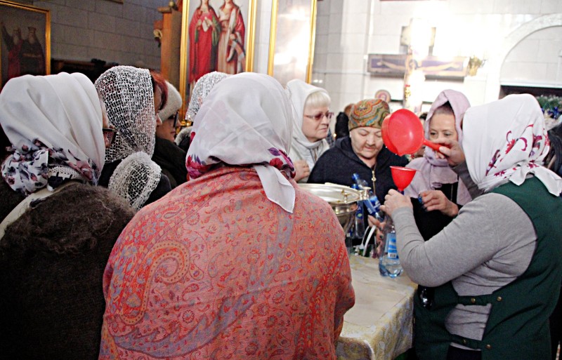 По окончании богослужения прихожане и все желающие имели возможность набрать святую воду. Для верующих христиан считается важным взять с собой из церкви хотя бы небольшую бутылочку этой благодатной воды. Придя домой, многие окропляют ею свое жилище, поют тропарь праздника, а затем ставят святую воду в темное место или около икон.