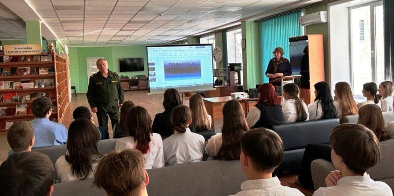Председатель Совета ветеранов Шульга Евгений Анатольевич рассказал ребятам о своих встречах с жителями непокоренного города, о своём отце, сражавшимся на Курской дуге и прошедшем всю войну.