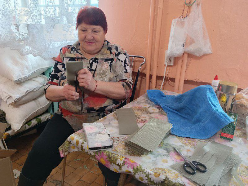 Тем временем в Муртыгите участницы клуба по интересам «На Завалинке» плетут очередную партию маскировочных сетей для отправки на фронт.