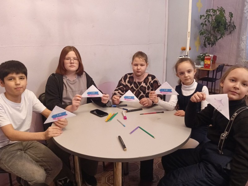 Ребята мастерят открытки и поздравляют бойцов с наступающим Днём защитника Отечества, желают здоровья, удачи, боевых успехов и благополучного возвращения домой.