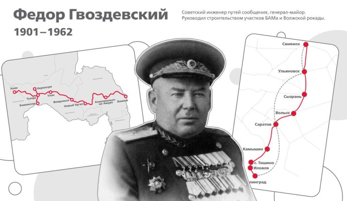 125 лет назад родился Федор Гвоздевский – советский инженер путей сообщения, генерал-майор. Под его руководством в сложнейшие для страны годы Великой Отечественной войны проектировали и строили участки БАМа и Волжскую рокаду.