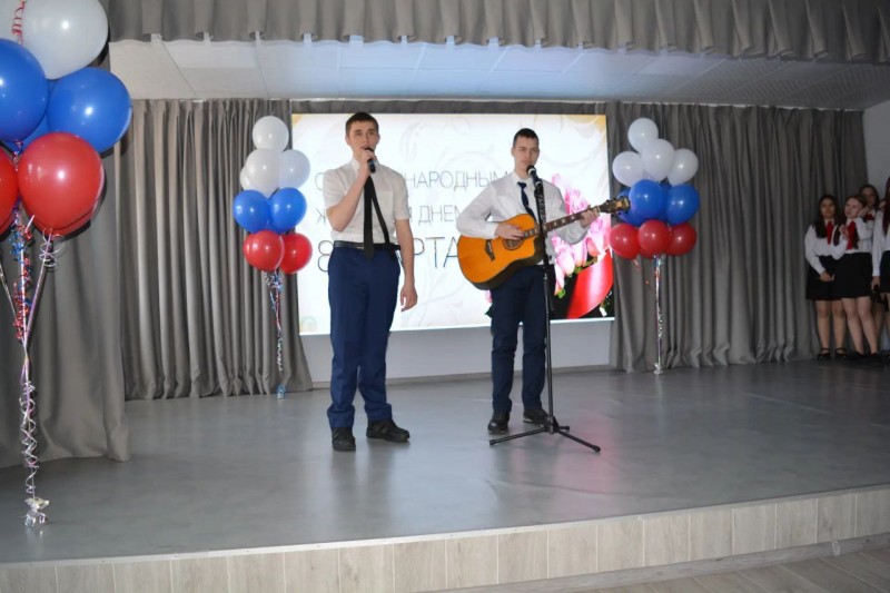 В завершение концерта от преподавателей — мужчин прозвучали тёплые слова благодарности и пожелания всем женщинам счастья, здоровья и благополучия. Атмосфера была наполнена радостью, улыбками.